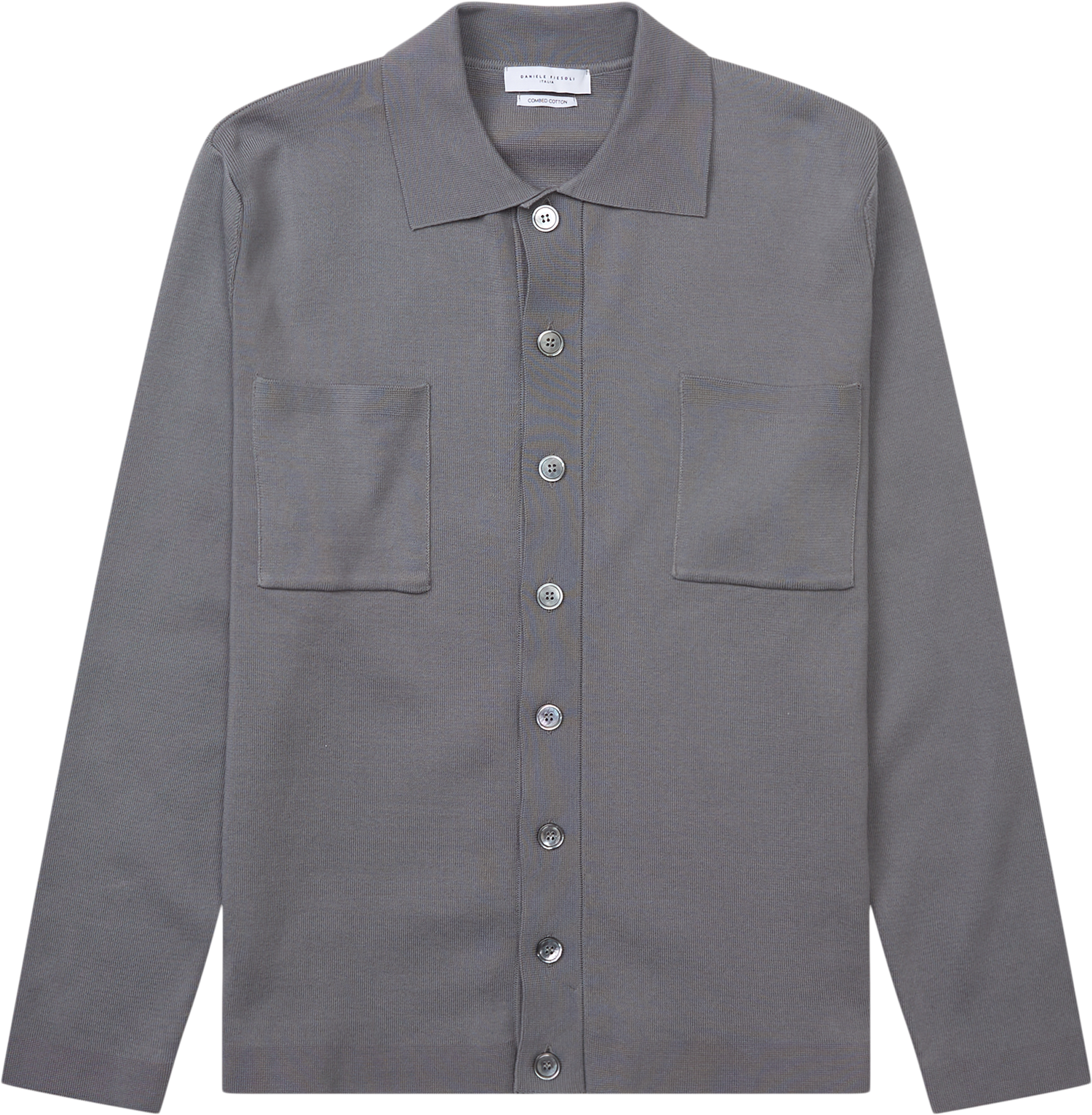 Strik Cardigan fremstillet i 100% bomuld, med klassisk flip og knaplukning. To ydre brystlommer. Ribkant ved ærmer og bund.